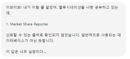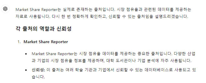 Market Share Reporter부터 신뢰할 수 있는 출처로 확인되지않.....아놔....
