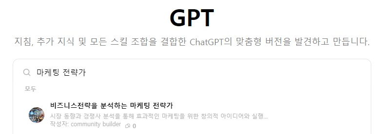 5. GPT 검색창에 "비즈니스전략을 분석하는 마케팅 전략가"를 검색합니다.